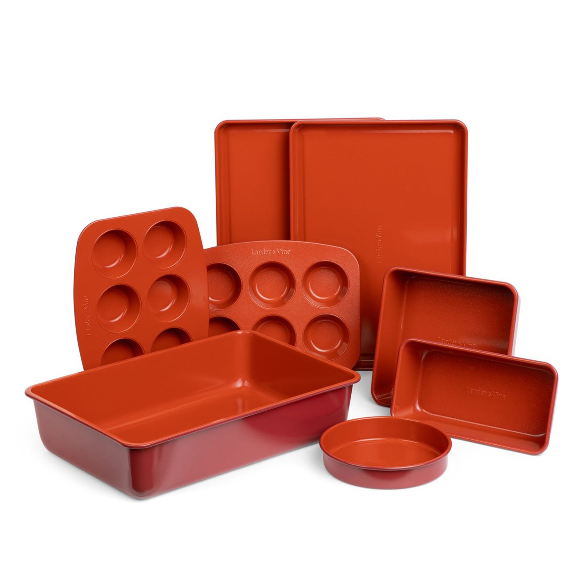 Maximize your kitchen space with this smart design that allows all 8 pieces to nest neatly within a compact 10 x 15 inch footprint for clutter-free storage. Crafted from heavy-gauge aluminized steel with durable four-layer construction, this bakeware is built to resist warping while delivering years of reliable performance. Plus, it’s freezer and oven safe up to 475°F! Enjoy healthier baking without harmful chemicals like PFAS or PFOA; add effortless cleanup into the mix and you’ve got the perfect partner for all your delicious creations!