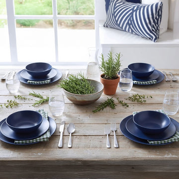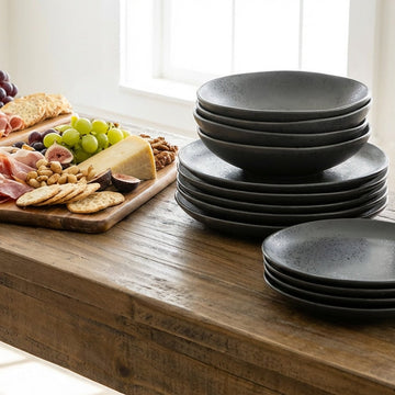 While dishwasher safe, hand washing with mild soap is recommended to maintain luster and longevity. For best results, allow pieces to cool before washing and clean with warm, soapy water and a soft sponge. Avoid abrasive cleaners, scouring pads, and sharp utensils to help preserve the coating.