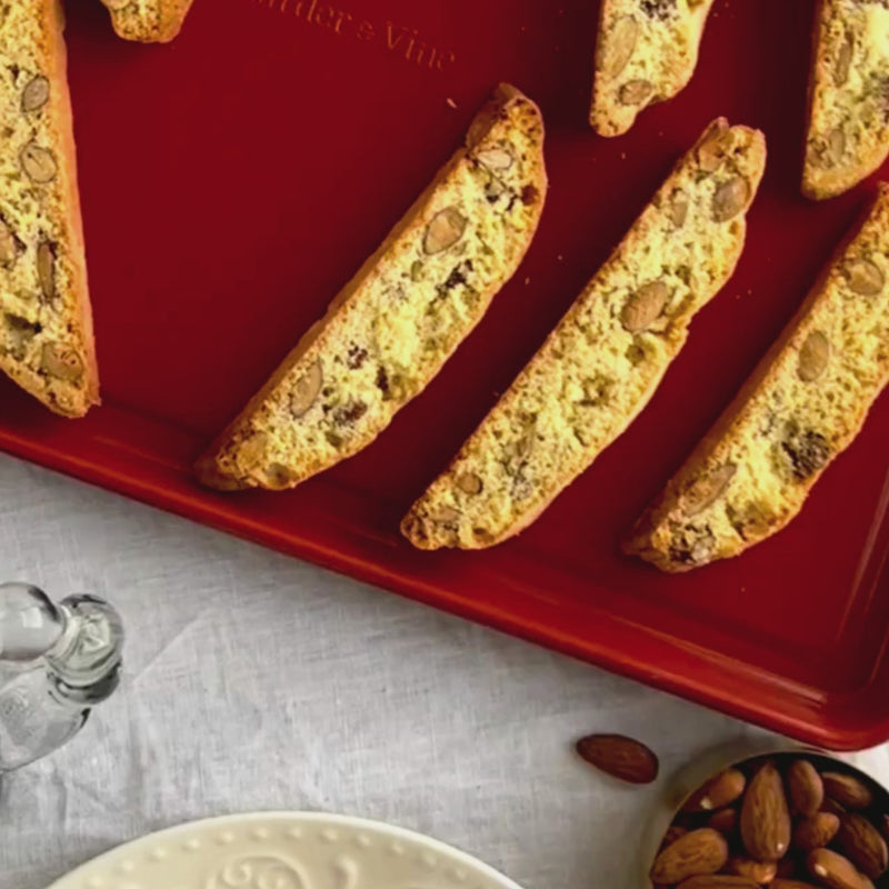 Our bakeware is made from an aluminized steel core with 4 protective ceramic coating layers that are made without PFAS, PFOA, PTFE, BPA, lead, or cadmium, making it a safe and reliable choice for your kitchen.
